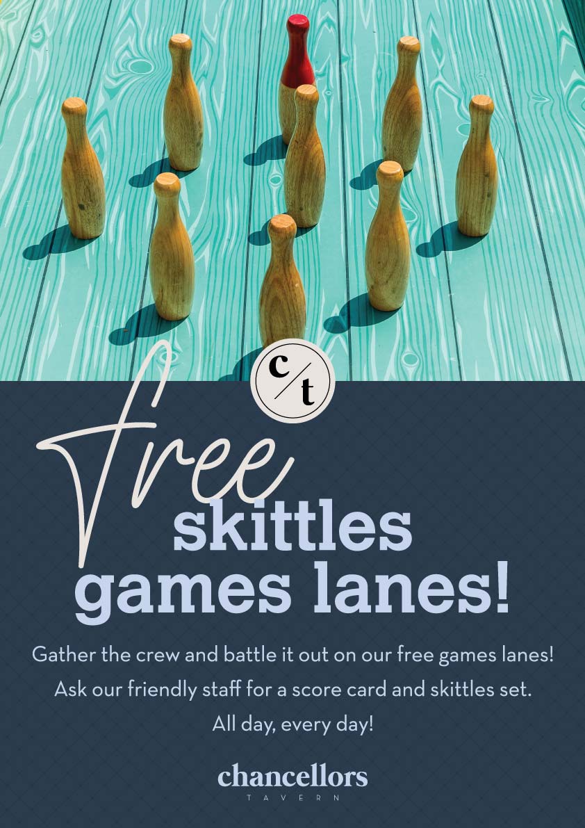 Enjoy a game of classic ping pong or head to the game lanes for free skittles.